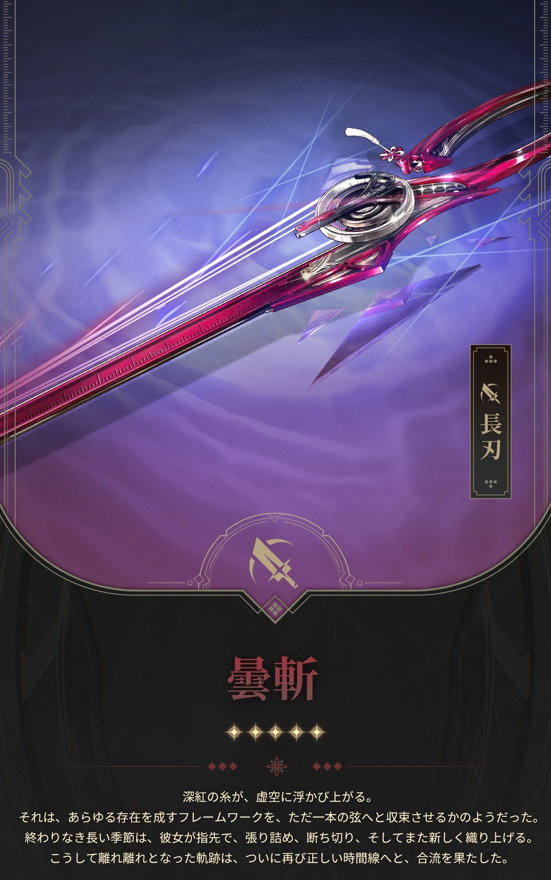 切り裂き・速攻またはチェンソーモード・回避反撃【切り裂きの残響】を消費した際の、切り裂き・終結のダメージ倍率増加効果が120%アップ。この効果は、万の糸・終への収束のダメージ倍率アップ効果と重ね掛けできる。