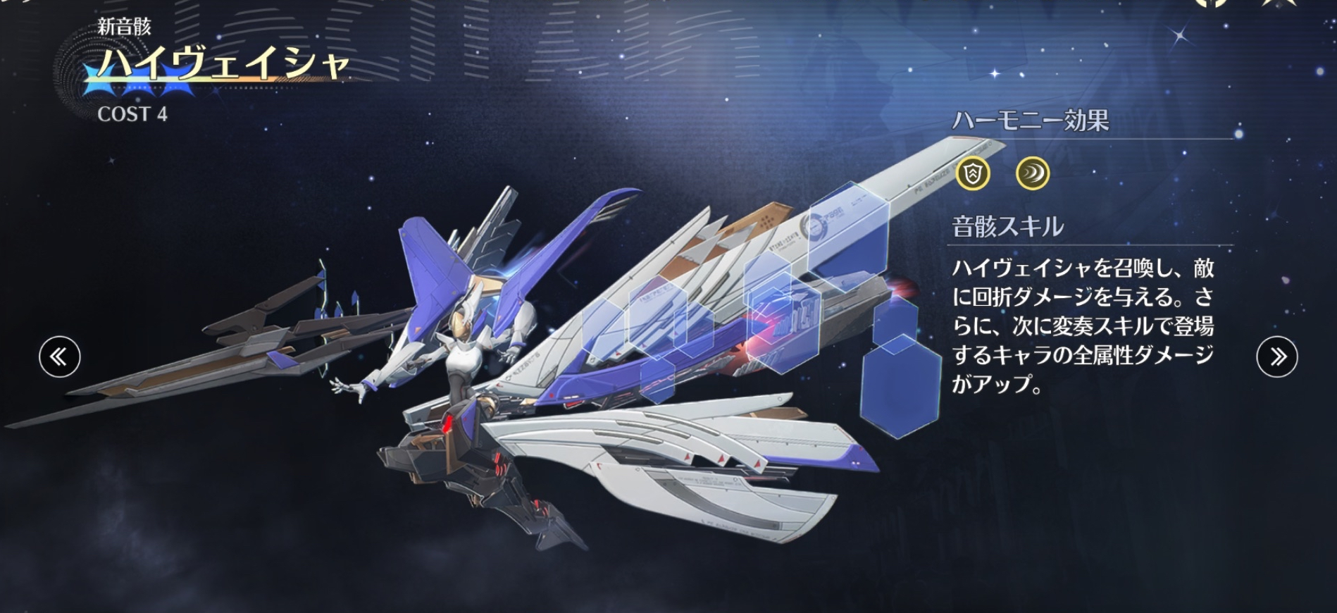 ハイヴェイシャはゴールデン・ヴァリアント、リフレクト・ブレイズの4cost枠になりそうです。リンネー用だと思いますが、メイン効果がサポートなので、リンネーはサブアタッカーの可能性が高いかもです。