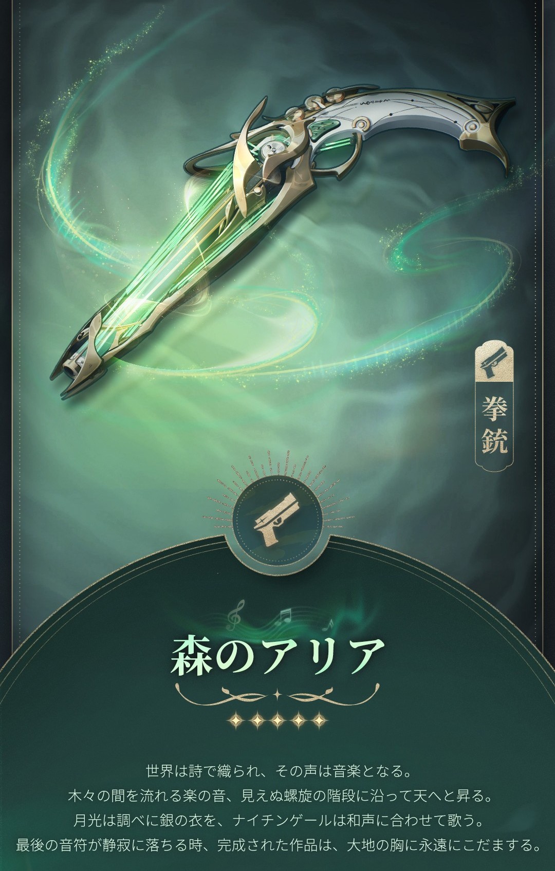 【音律】をすべて消費して前方に重い音符を発射し、気動ダメージを与え、周囲の目標を持続的に率引し、さらに命中した目標に【風触効果】を1スタック付与する。