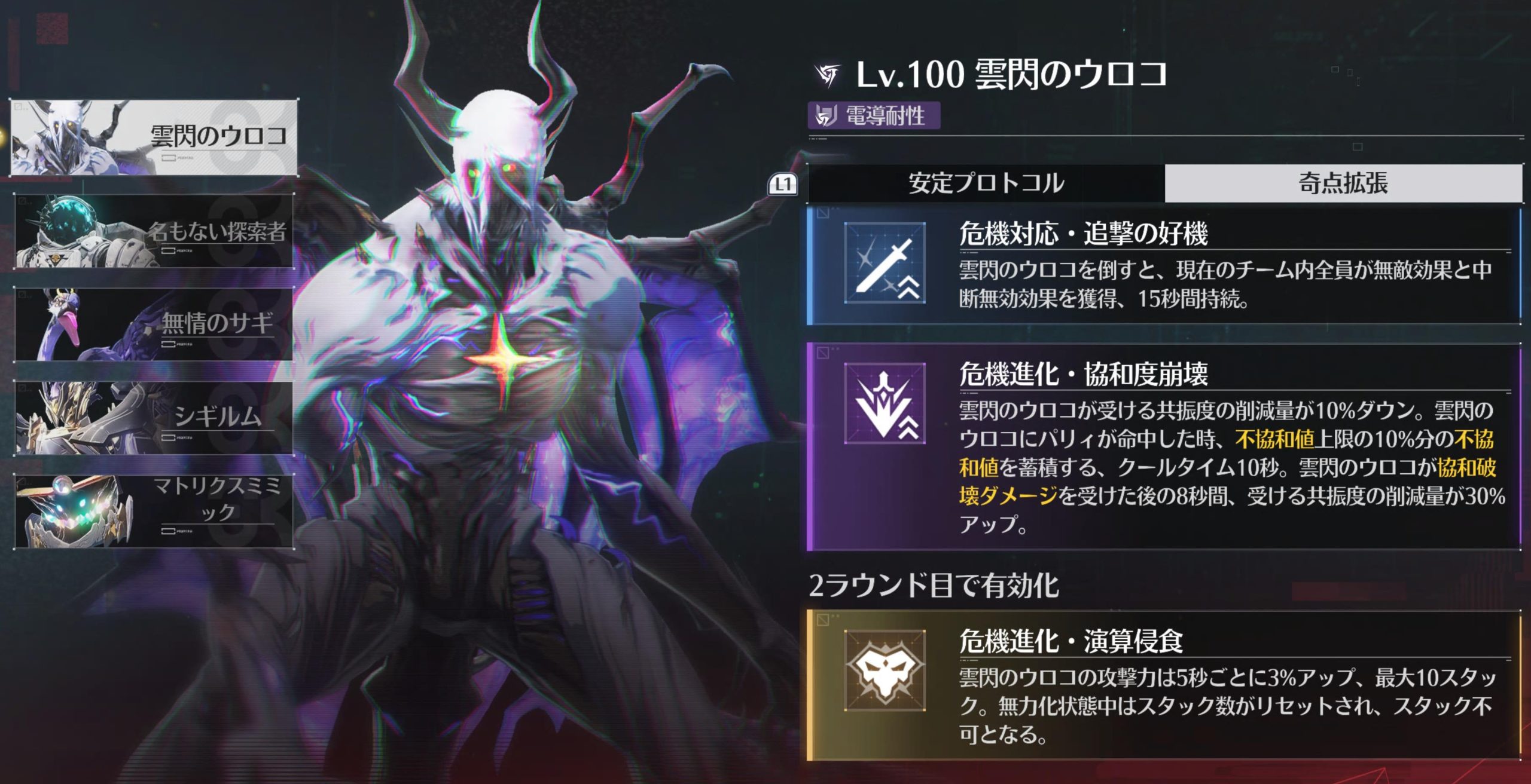 奇点拡張では、敵の特殊ギミックが発動するようになるほか、どんどん強さも増していきます。ですが、敵の特殊ギミックは一部効果を使って無効化することができるため、それらを駆使して戦っていきましょう。
