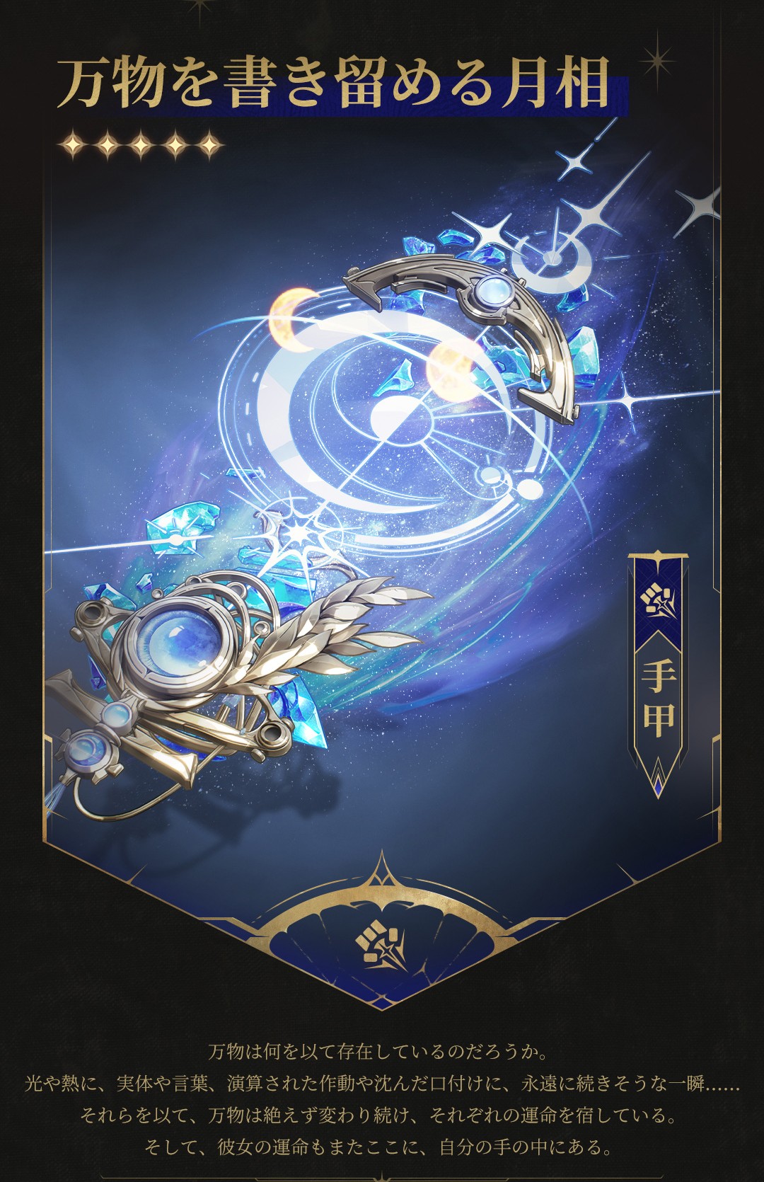 月相の巡りには弦月と三日月の2つの状態があり、初期状態では弦月となる。ユーノは重撃・流変を発動することで、この2つの状態を切り替えられる。
