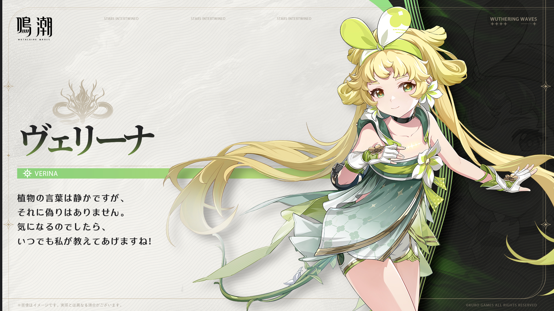 終奏スキル開花発動時、チーム内登場キャラのHPを5秒ごとに回復。回復量はヴェリーナの攻撃力の20%、30秒間持続。