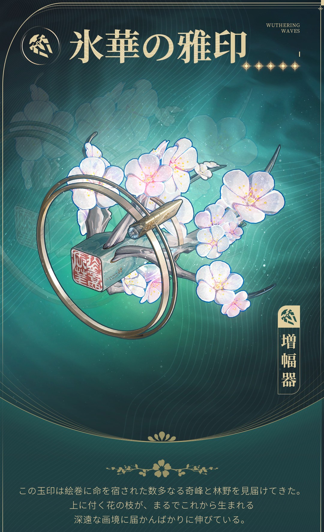 折枝が共鳴解放虚実の雅趣を発動する時、チーム内全員の攻撃力が20%アップし、30秒間持続。